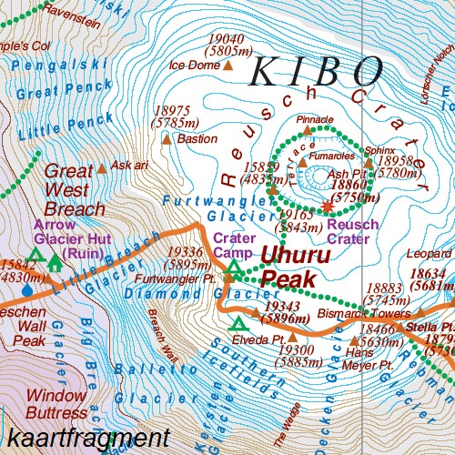 Kaarten en gidsen > Wandelen > Wandelkaarten > Afrika > Oost-Afrika > Tanzania, Zanzibar > Kilimanjaro national park trekking map 1:100.000
