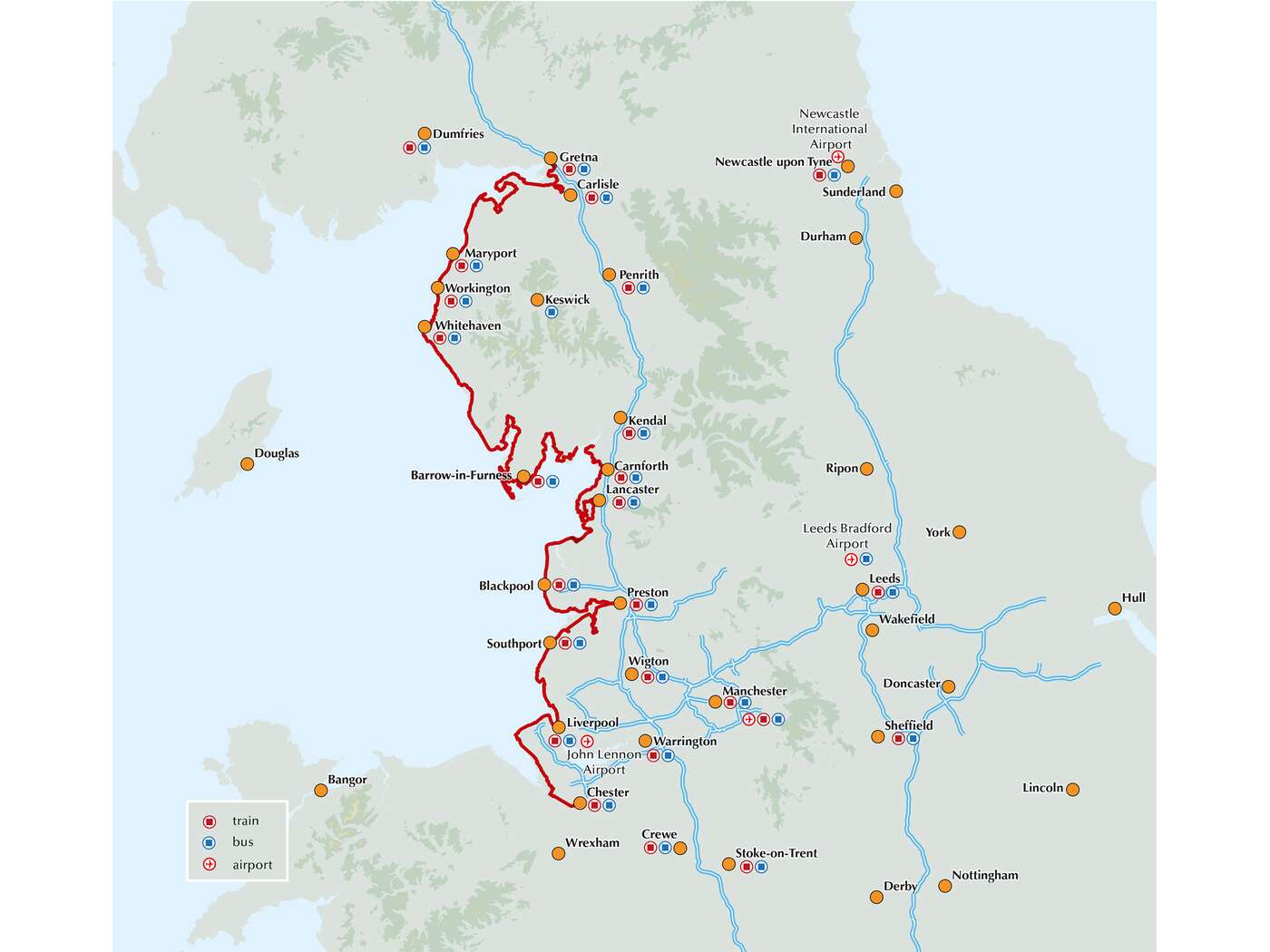 A guidebook to walking the northwest section of the King Charles III England Coast Path between Gretna and Chester. Covering 590km (367 miles), this straightforward trail along the Cumbria, Lancashire and Merseyside coast takes around 1 month to hike.