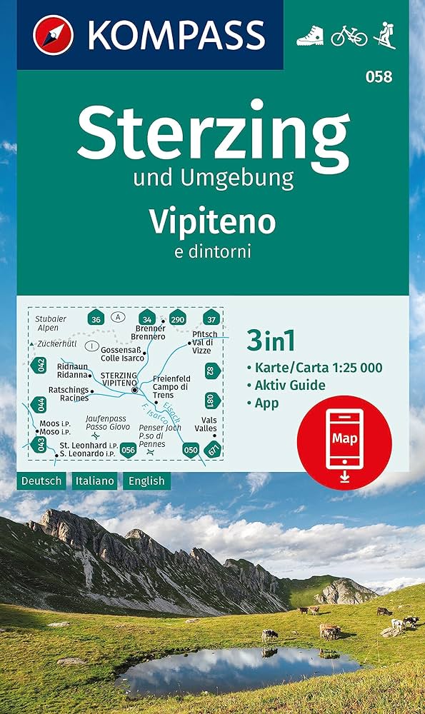 Kaarten en gidsen > Wandelen > Wandelkaarten > Europa > Zuid-Europa / Middellandse Zee > Italië > Noord-Italië > Zuid-Tirol, Dolomieten > Kompass wandelkaart KP-058 Sterzing/Vipiteno 1:25.000