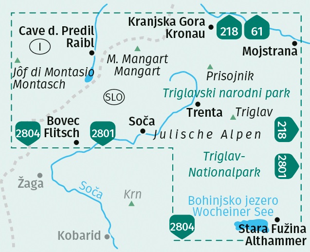 Kaarten en gidsen > Wandelen > Wandelkaarten > Europa > Centraal- en Oost-Europa, Balkan, Siberië > Westelijke Balkan > Slovenië > Kompass wandelkaart KP-064 Julische Alpen NP Triglav 1:25.000