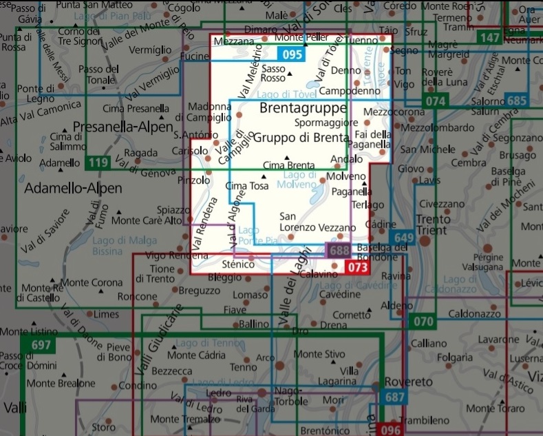 Via delle Bocchette / wandelkaart Madonna di Campiglio, Lago di Molveno, Parco Naturale Adamello-Brenta 1:25.000