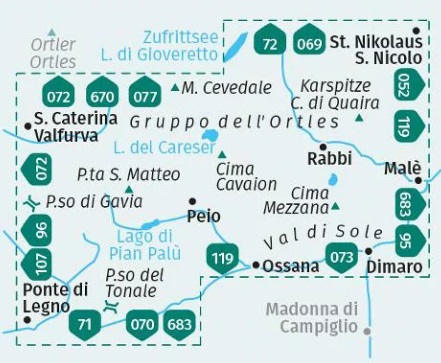 Ponte di Legno, Gruppo di Cevedale, Ossana, schaal 1:25.000