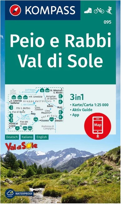 Kaarten en gidsen > Wandelen > Wandelkaarten > Europa > Zuid-Europa / Middellandse Zee > Italië > Noord-Italië > Zuid-Tirol, Dolomieten > Kompass wandelkaart KP-095 Peio e Rabbi, Val di Sole