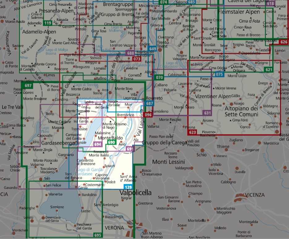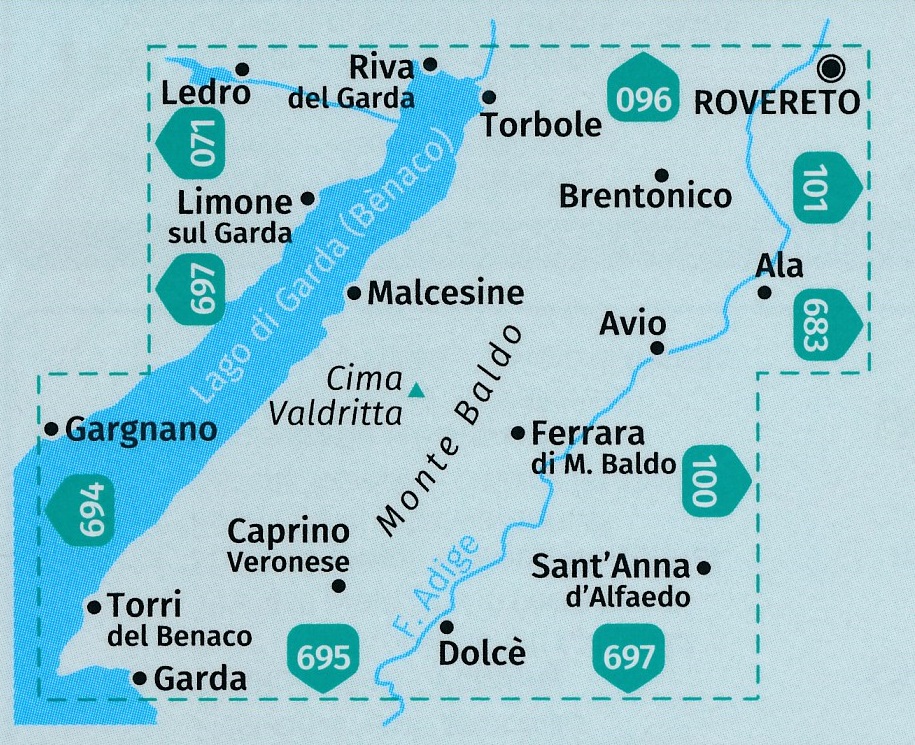 wandelkaart Malcesine, Cima Valdritta, Riva, Limone sul Garda, Gardameer