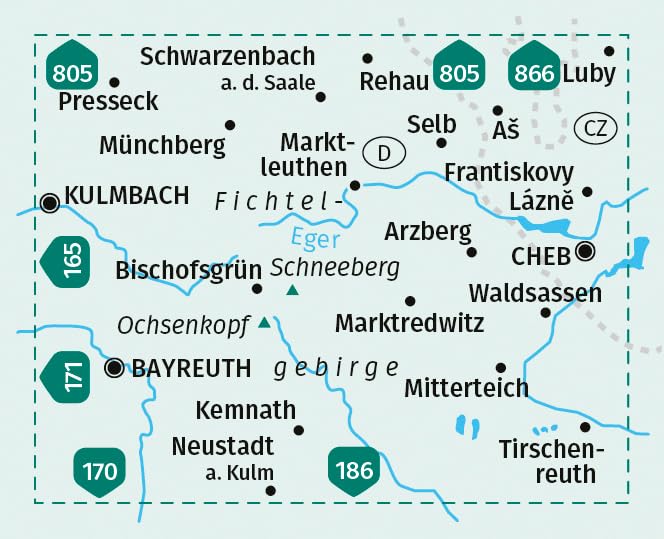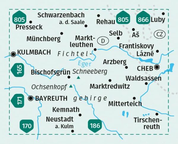 wandelkaart Bayreuth, Marktredwitz, Marktleuthen, Kemnath, Arzberg, Bischofsgrün, Waldsassen 1:50.000