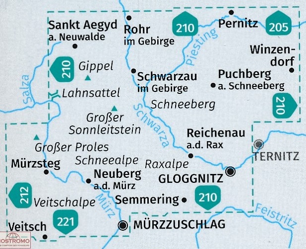 wandelkaart Schneeberg, Rax, Schwarzau, Reichenau, Gloggnitz, Puchberg, Mürzsteg