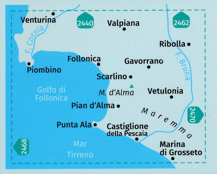Kaarten en gidsen > Wandelen > Wandelkaarten > Europa > Zuid-Europa / Middellandse Zee > Italië > Midden-Italië > Toscane, Florence > Kompass wandelkaart KP-2469 Costa della Maremma 1:50.000