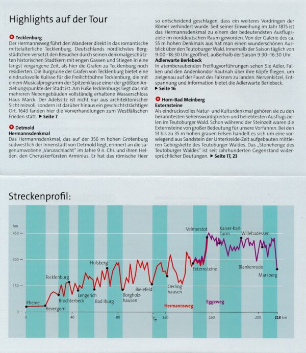 - Bekannte Sehenswürdigkeiten am Weg sind das Hermannsdenkmal, die Dörenther Klippen mit dem Hockenden Weib, die Sparrenburg oder die Externsteine.