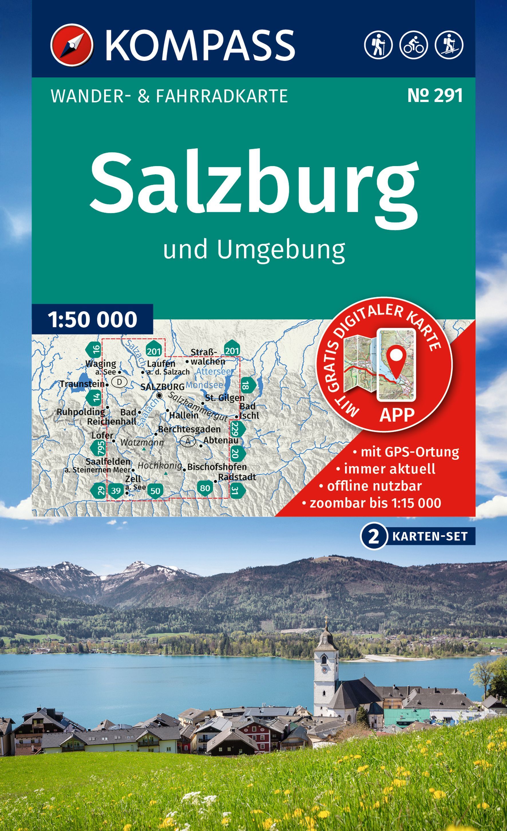 Kaarten en gidsen > Wandelen > Wandelkaarten > Europa > Zwitserland en Oostenrijk (en Alpen als geheel) > Oostenrijk > Salzburger Land & Stiermarken > Kompass wandelkaart KP-291 Salzburg & omgeving 1:50.000