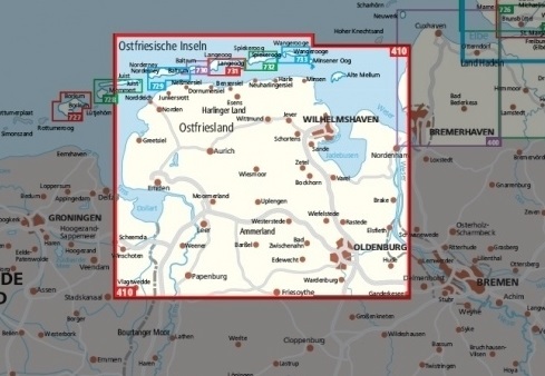 Kaarten en gidsen > Wandelen > Wandelkaarten > Europa > Duitsland > Noordwest-Duitsland (met Harz) > Ostfriesland > Kompass wandelkaart KP-410 Ostfriesland / Oldenburg 1:50.000
