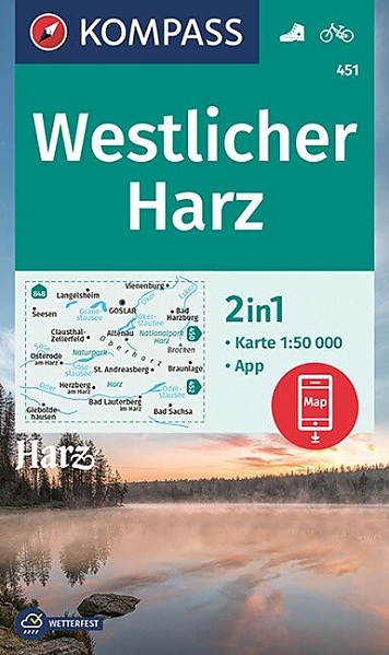 Kaarten en gidsen > Wandelen > Wandelkaarten > Europa > Duitsland > Noordwest-Duitsland (met Harz) > Harz > Kompass wandelkaart KP-451 Westlicher Harz