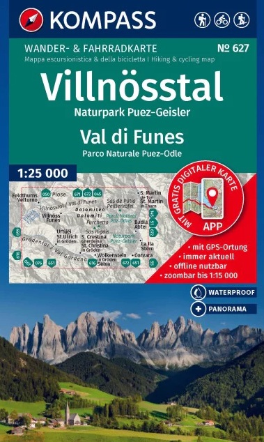 Kaarten en gidsen > Wandelen > Wandelkaarten > Europa > Zuid-Europa / Middellandse Zee > Italië > Noord-Italië > Zuid-Tirol, Dolomieten > Kompass wandelkaart KP-627 Villnösstal 1:25.000