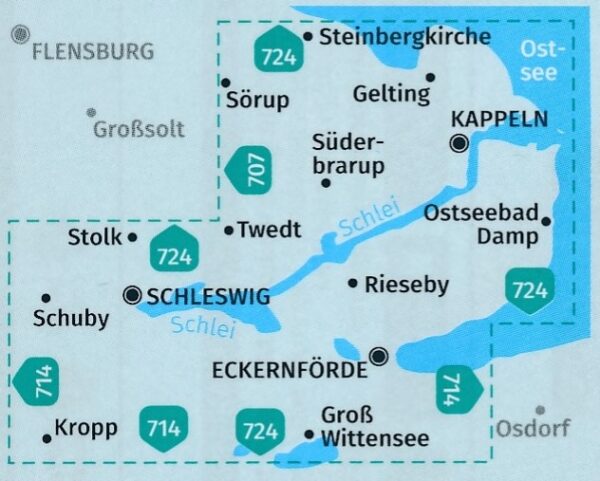 Kaarten en gidsen > Wandelen > Wandelkaarten > Europa > Duitsland > Noordwest-Duitsland (met Harz) > Sleeswijk-Holstein > Kompass wandelkaart KP-708 Ostseefjord, Schlei, Schleswig 1:35.000