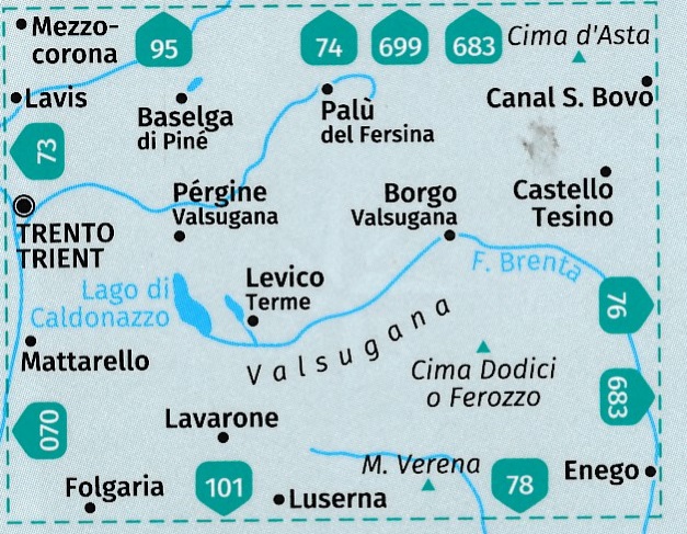 wandelkaart Trento e.o.: Lago di Caldonazzo, Levico, Lavarone