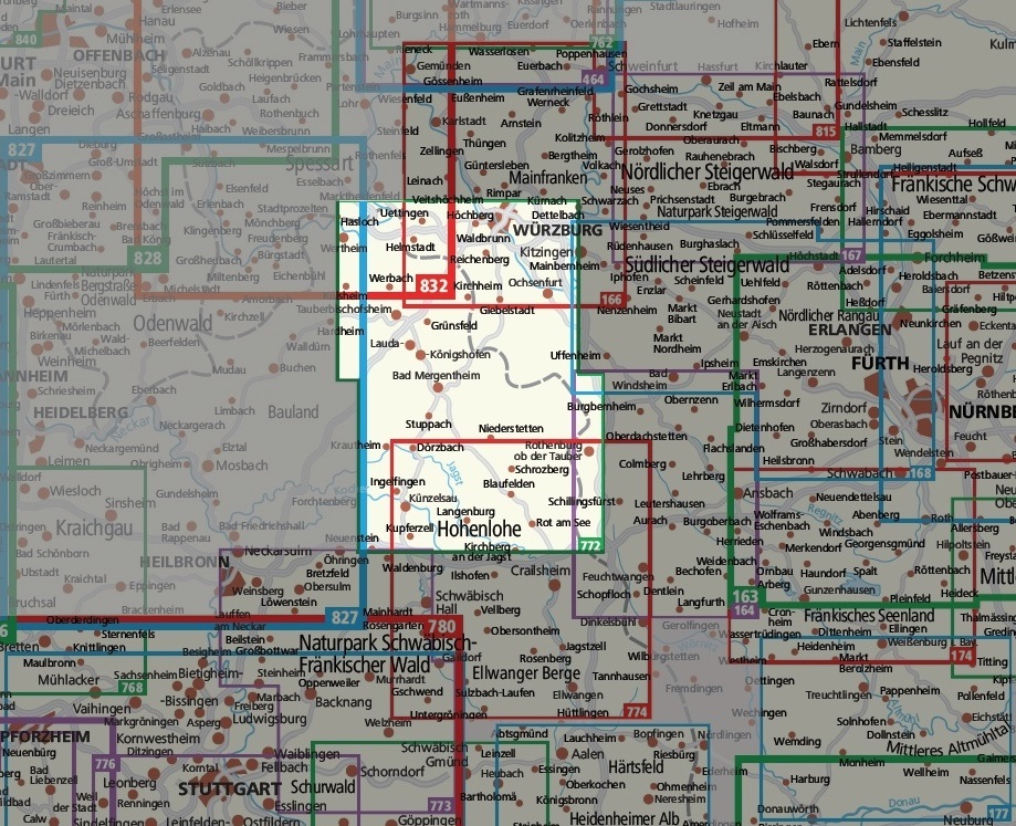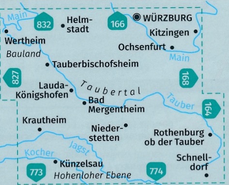 wandelkaart 1:50.000, Bad Mergentheim, Lauda-Königshofen, Rothenburg ob der Tauber, Würzburg