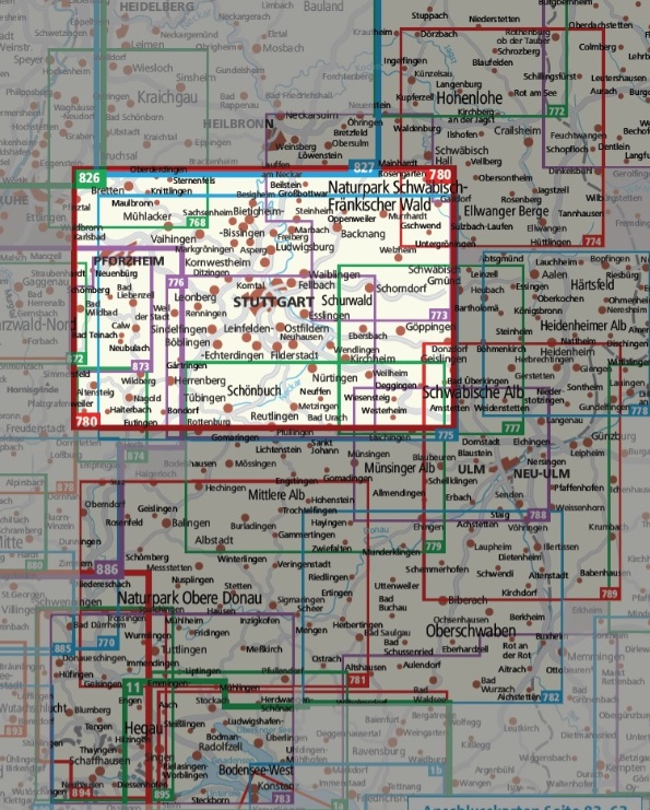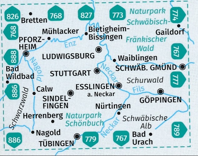 set van 2 wandelkaarten 1:50.000: Pforzheim, Göppingen, Tübingen; Enz-, Nagold- en Neckartal