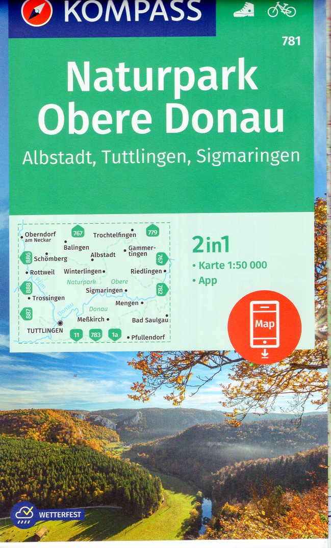 Kaarten en gidsen > Wandelen > Wandelkaarten > Europa > Duitsland > Zuid-Duitsland > Baden-Württemberg > Zwarte Woud > Kompass wandelkaart KP-781 NP Obere Donau 1:50.000