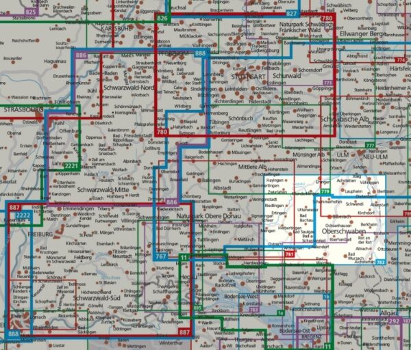 Goede geplastificeerde wandelkaart (tevens fietsroutes). Wandelingen in rood ingetekend. Reliëfaanduiding d.m.v. hoogtelijnen. Met symbolen voor campings, parkeerterreinen, uitzichtpunten en overige toeristische informatie. Inbegrepen is een QR-code waarmee u wordt geleid naar de digitale kaart (zoombaar) van dit gebied. Sommige kaarten gaan vergezeld van een boekje met wat toeristische streekinformatie (Duitstalig).