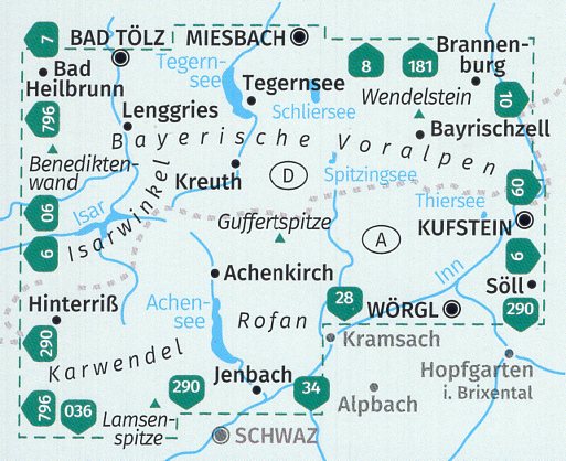 met Bayerische Voralpen, Isarwinkel, Tegernsee, Schliersee, Achensee | 3 kaarten 1:25.000