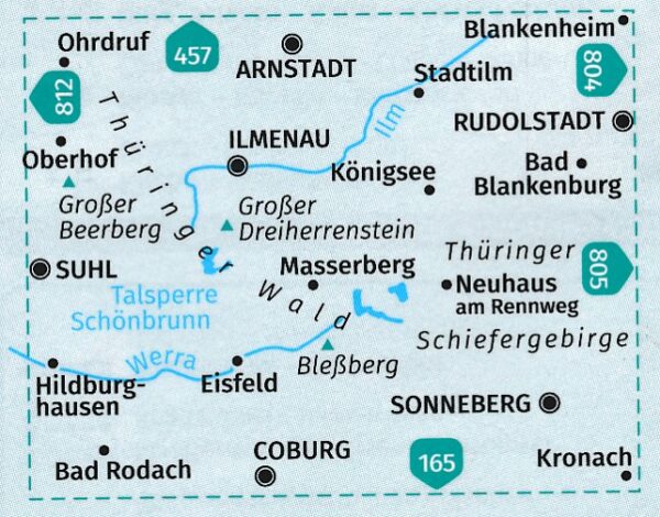 wandelkaart Ilmenau, Eisfeld, Coburg, Grosser Dreiherrenstein, Masserberg 1:50.000