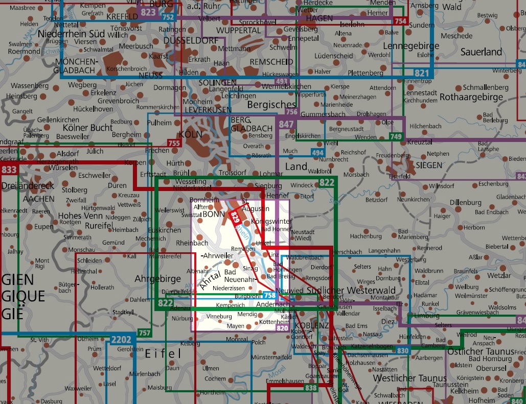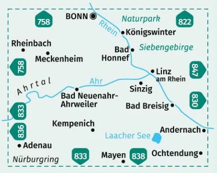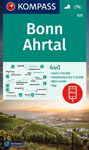 Kaarten en gidsen > Wandelen > Wandelkaarten > Europa > Duitsland > West-Duitsland > Nordrhein-Westfalen > Aken, Keulen en Bonn > Kompass wandelkaart KP-820 Bonn/Ahrtal
