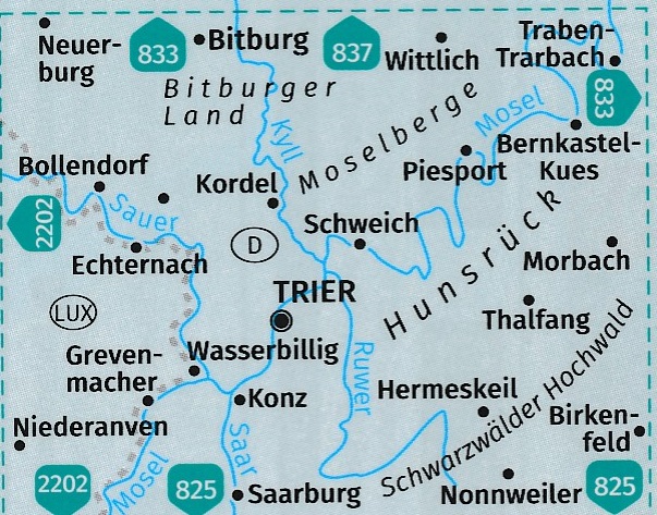wandelkaart vh gebied tussen Bitburg, Traben-Trarbach, Saarburg en Birkenfeld