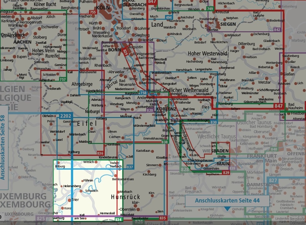 Zoekt u een kaart die net naast deze ligt..? Kijk op het bladoverzicht, dat u vindt op één van de hier getoonde afbeeldingen, en typ het nummer van de gewenste kaart in het zoekveld (hierboven), voorafgegaan door KP- .