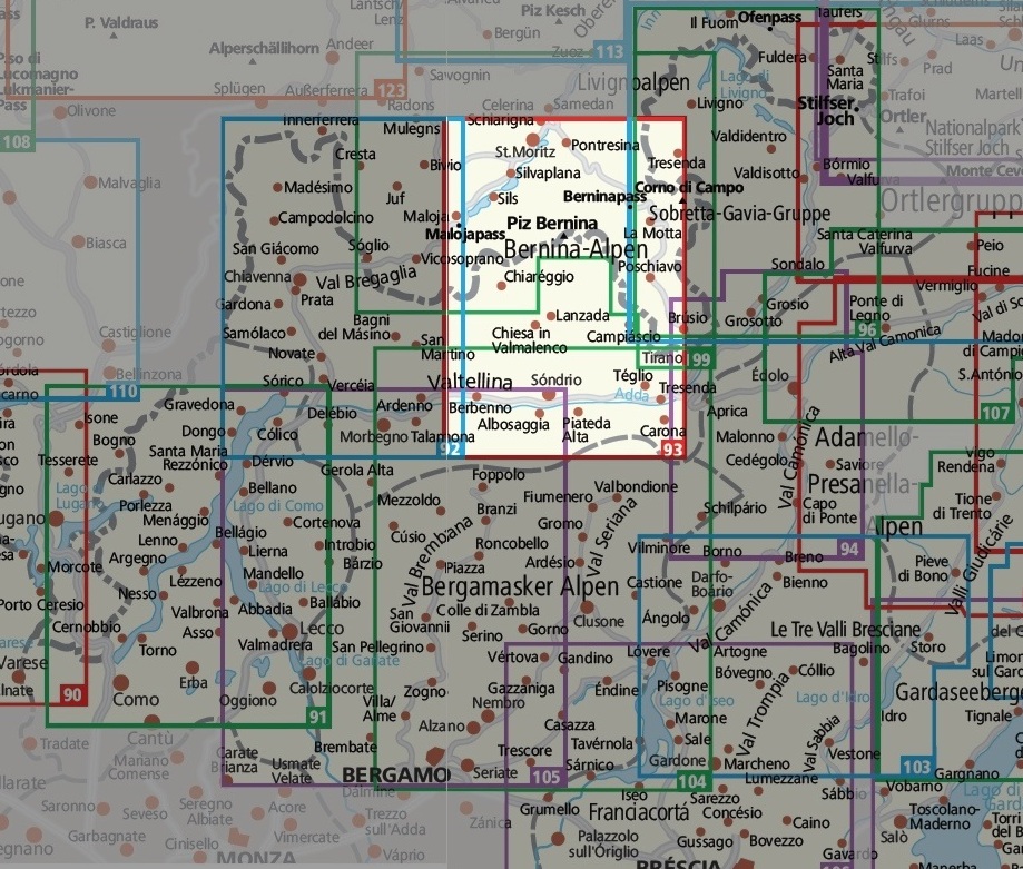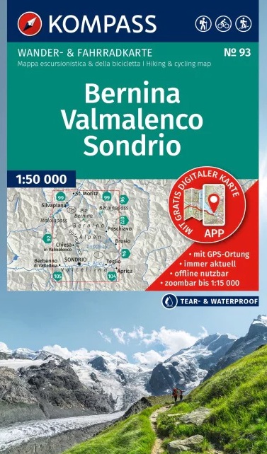 Kaarten en gidsen > Wandelen > Wandelkaarten > Europa > Zuid-Europa / Middellandse Zee > Italië > Noord-Italië > Milaan, Lombardije, Italiaanse Meren > Kompass wandelkaart KP-93 Bernina, Valmalenco, Sóndrio 1:50.000