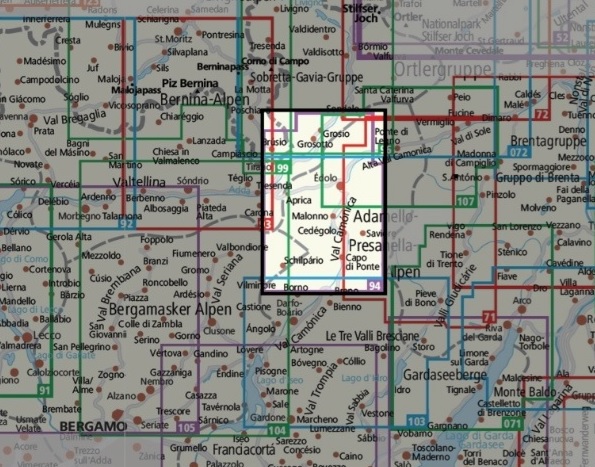 wandelkaart Tirano, Ponte di Legno, Val Camonica, Sondalo, Tirano, Saviore dell’Adamello, Schilpario