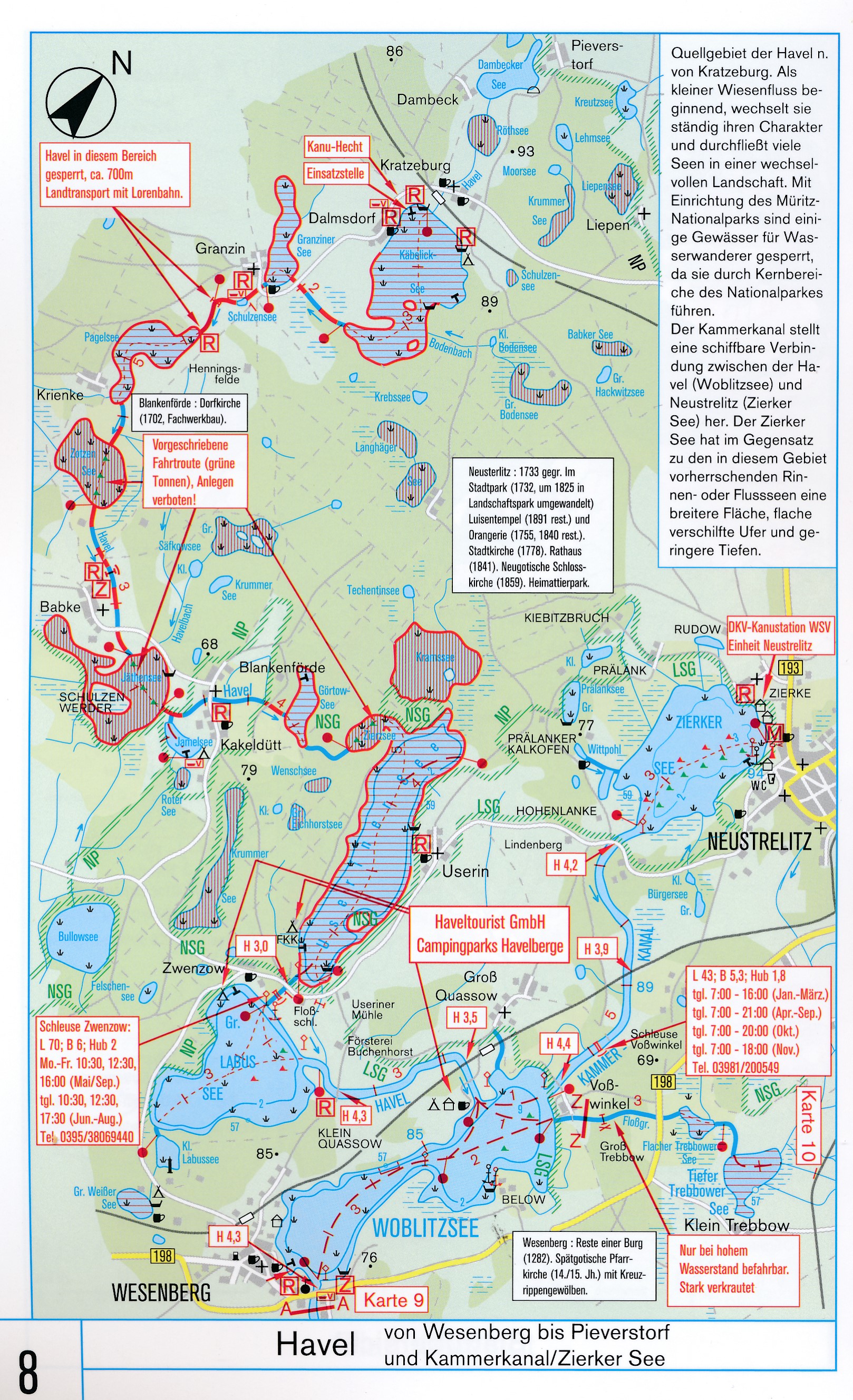 Gedetailleerde routekaarten in een scheur- en watervast atlasje. Met aanduiding van campings, toeristische info, natuurparken, praktische info, etc. (77 blz., geïllustreerd, 23,5 cm) *** Alle Wasserwanderrouten in Mecklenburg-Vorpommern. Mit Einzugsbereich der Havel bis Fürstenberg, Mecklenburger Seen, Elde, Einzugsbereiche der Warnow, Peene und Ücker sowie Boddengewässer.