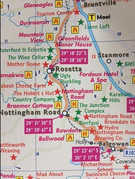 KwaZulu-Natal, Pietermaritzburg, Drakensberg, Midlands, Battlefields, Route 617 & Bushmans River Region. Indexed road map of the central KZN with an extensive map of Pietremaritzburg on the reverse. The road map at 1:250,000 includes the Drakensberg range and extends from Harrismith and the Sterkfontein Dam in the north west to uLundi in the east and Durban in the south. Road detail distinguishes tarred and un-tarred roads, indicates mountain passes and shows intermediate driving distances. Railways, airports and airfields are also included. There is no indication of the relief of the area, apart from some peak heights in highland areas. Provincial boundaries are included and reserves and conservation areas are highlighted, Symbols indicate places of interest, historical sites, battle sites, tourism offices, shopping/ eating opportunities etc. The map is annotated with brief notes on places of interest and there is a list of contact details for accommodation and tourism offices.