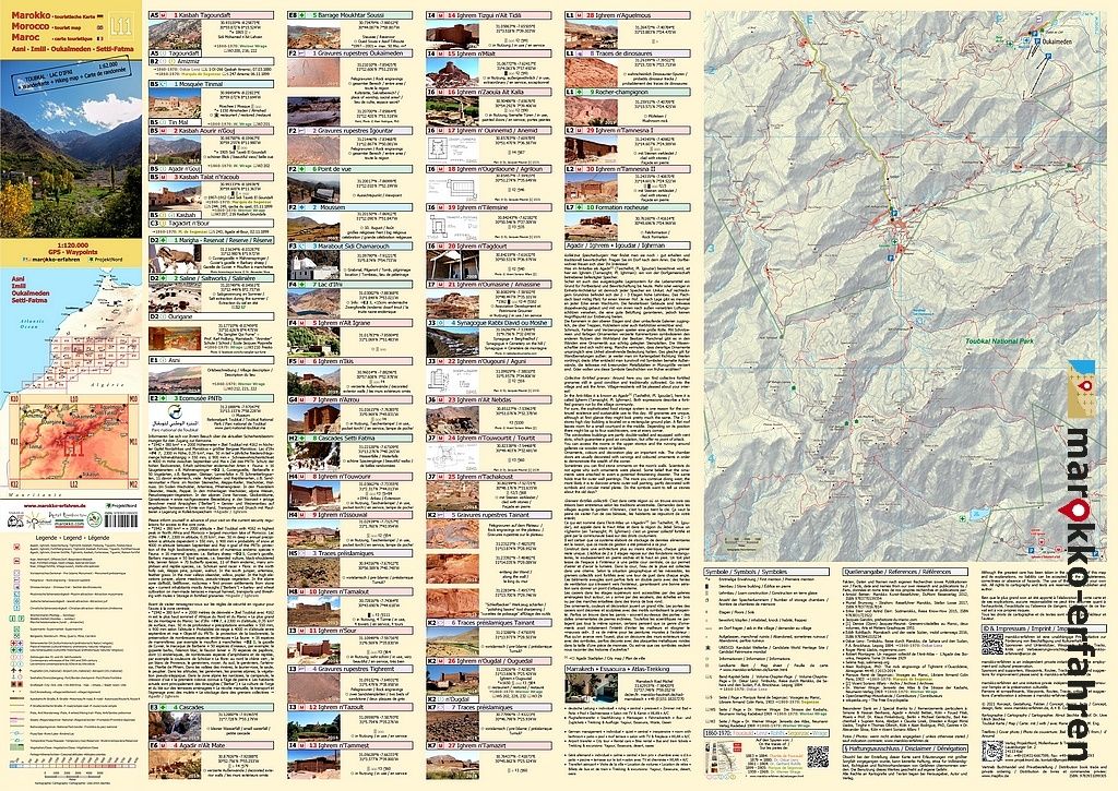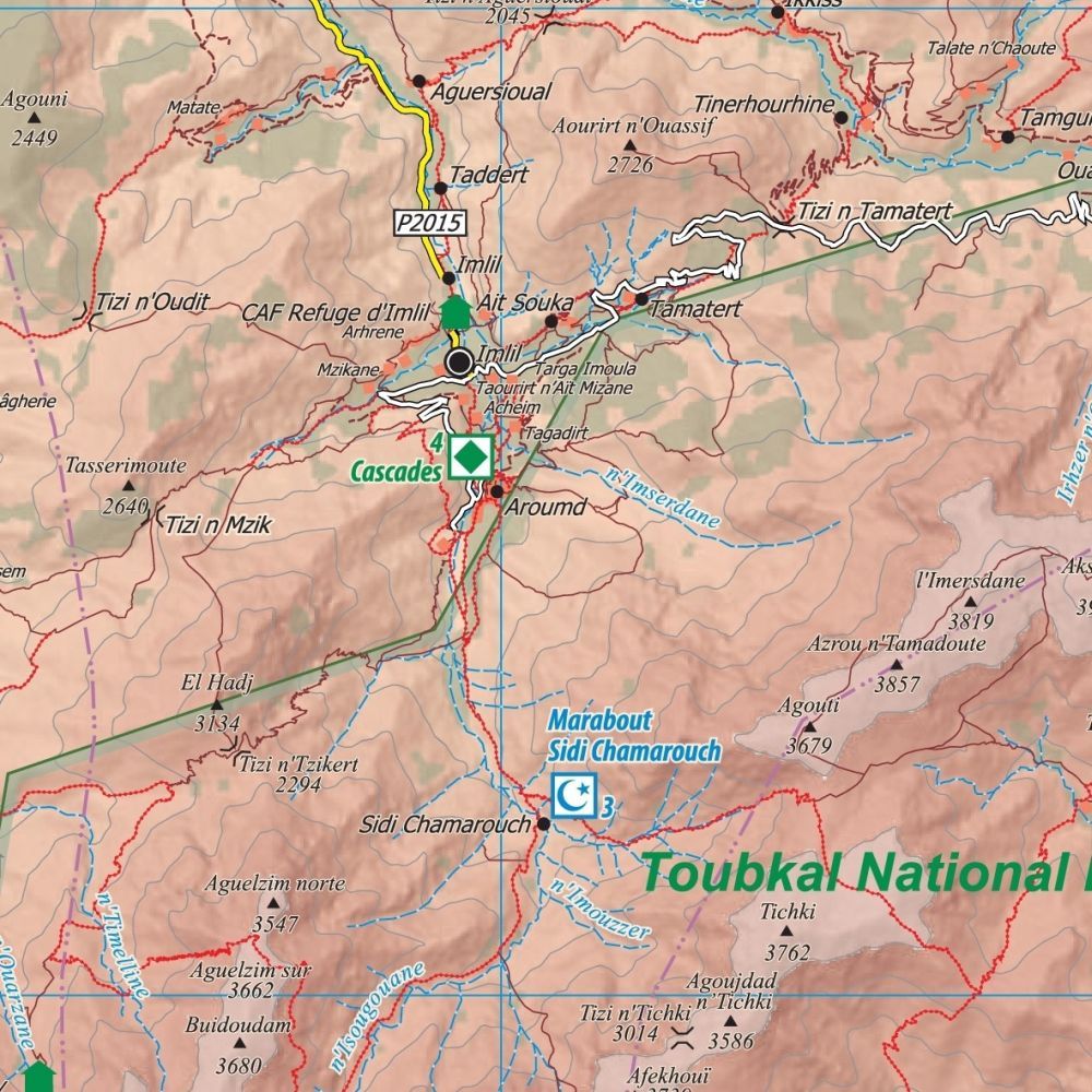 De toeristische kaarten geven het reliëf aan en iedereen die Marokko wil beleven, heeft met deze kaarten een schat aan informatie. Wandelpaden, paden en verharde wegen zijn gemakkelijk te onderscheiden. Tijdelijke rivierlopen (wadi's) worden getoond ter oriëntatie in het terrein. De kaart heeft een duidelijke legenda. Op de kaart staan ook bezienswaardigheden aangegeven, deze worden onderscheiden met kenmerken en worden op de achterzijde toegelicht. Er wordt onderscheid gemaakt tussen de categorieën architectuur, prehistorie, natuur + leven (inclusief geologie) en religie. Daarnaast staat er (ook op de achterkant) meestal een representatieve kleurenfoto en achtergrondinformatie over de geschiedenis, bezienswaardigheden en andere bijzonderheden. Ook nog op de achterkant: een extra gedetailleerde inzet met de omgeving Toubkal (ca. 1:60.000).