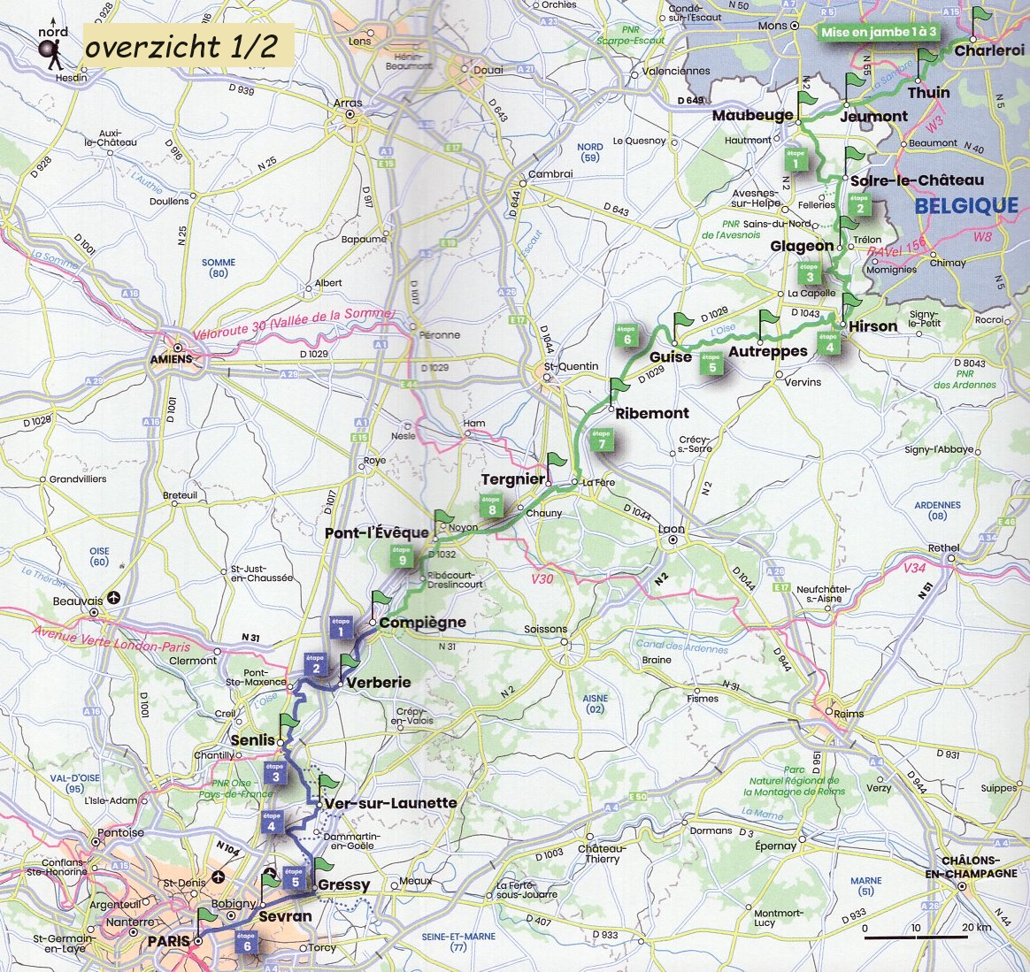 Dit deel gaat over de noordelijke helft van het Franse traject, het brengt je van Charleroi (België) via Parijs naar de Loirevallei.