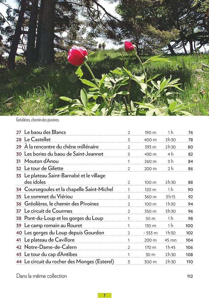 Deel uit een reeks leuke wandelgidsjes met kortere wandelingen, die ook goed met kinderen te doen zijn. De meeste wandelingen lopen rond, daar waar het niet anders kan en ook bij wandelingen naar een (makkelijke bereikbare) bergtop, zijn het lijnwandelingen. Het boekje bevat kaartjes met de ingetekende wandelroute, de nodige praktische informatie bij iedere wandeling en wat leuke wetenswaardigheden. Goed verzorgd en geïllustreerd met vele kleurenfoto's. Franstalig, maar uw basiskennis van het Frans, de duidelijke wandelkaartjes én de ingestoken, door ons samengestelde Frans-Nederlandse wandelwoordenlijst, maken het volgen van de wandelingen uit deze boekjes prima te doen.