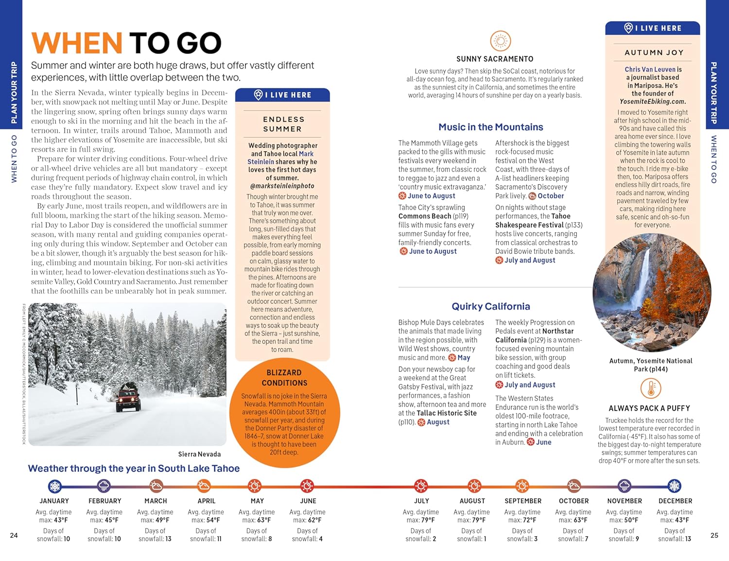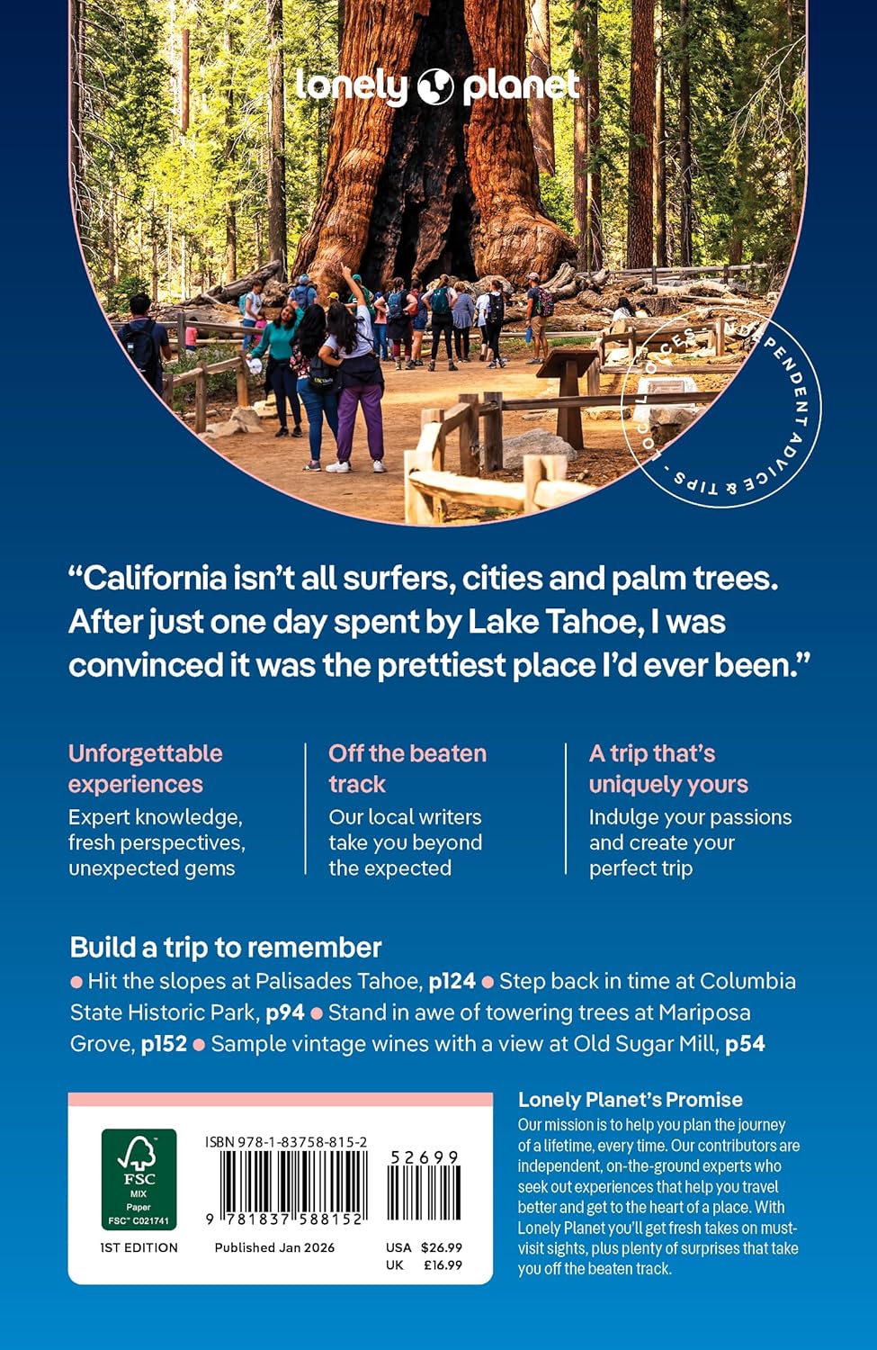 Lonely Planet's local travel experts reveal all you need to know to plan the trip of a lifetime in this latest edition of our guide to Lake Tahoe, Yosemite and Central California. Discover Lake Tahoe, Yosemite and Central California's most popular experiences and best kept secrets from exploring the lake's 72-mile loop for the best summertime kayaking and paddleboarding spots; to embarking on the ultimate road trip along Highway 395 that traces the eastern escarpment of the mighty Sierra Nevada; and stepping back in time in Old Sacramento to celebrate Gold Rush Days with historic costumes, music and horse races.