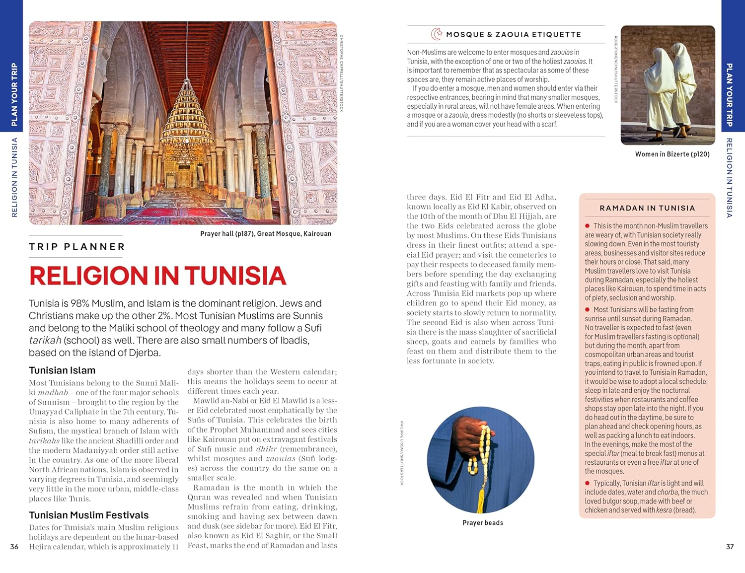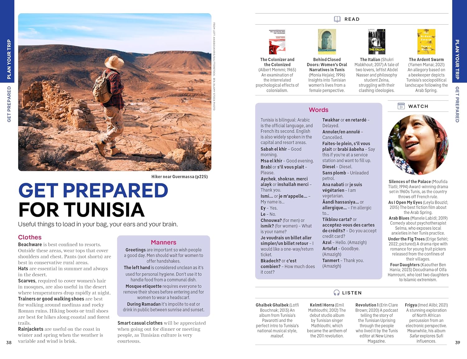 Lonely Planet's local travel experts reveal all you need to know to plan the trip of a lifetime in this latest edition of our guide to Tunisia. Discover Tunisia's most popular experiences and best kept secrets from snorkelling on the North Coast and quad biking at the oasis, Ksar Ghilane; to exploring Bulla Regia, a Roman city known for its underground villas; and admiring flocks of pink flamingos at Cap Bon's jewel like lake, Korba Lagoon.