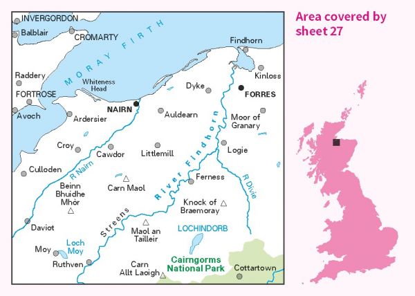 Kaarten en gidsen > Wandelen > Wandelkaarten > Europa > Britse Eilanden > Groot-Brittannië > Schotland > de Schotse Hooglanden (ten noorden van Glasgow / Edinburgh) > LR-027 Nairn, Forres, River Findhorn | topografische wandelkaart