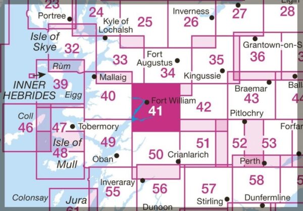 Kaarten en gidsen > Wandelen > Wandelkaarten > Europa > Britse Eilanden > Groot-Brittannië > Schotland > de Schotse Hooglanden (ten noorden van Glasgow / Edinburgh) > LR-041 Ben Nevis, Fort William & Glen Coe | topografische wandelkaart