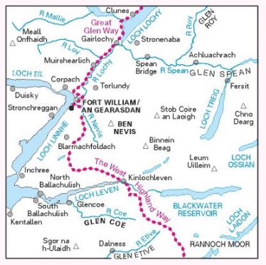 (wandelkaart Blackwater reservoir, Loch Linnhe, Glen mallie)