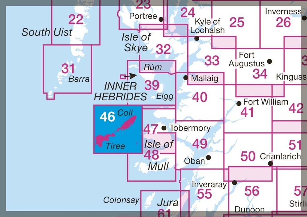 Kaarten en gidsen > Wandelen > Wandelkaarten > Europa > Britse Eilanden > Groot-Brittannië > Schotland > Skye & the Western Isles > LR-046 Coll + Tiree | topografische wandelkaart