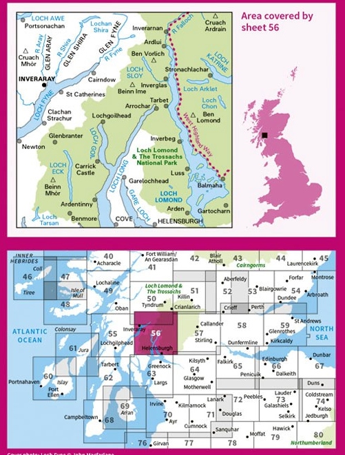 Kaarten en gidsen > Wandelen > Wandelkaarten > Europa > Britse Eilanden > Groot-Brittannië > Schotland > de Schotse Hooglanden (ten noorden van Glasgow / Edinburgh) > LR-056 Loch Lomond, Inveraray | topografische wandelkaart