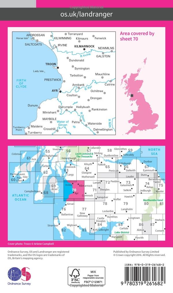 Kaarten en gidsen > Wandelen > Wandelkaarten > Europa > Britse Eilanden > Groot-Brittannië > Schotland > Zuid-Schotland > LR-070 Ayr, Kilmarnock | topografische wandelkaart