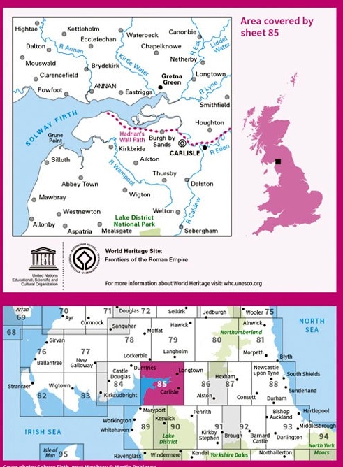 Kaarten en gidsen > Wandelen > Wandelkaarten > Europa > Britse Eilanden > Groot-Brittannië > Engeland > Noordwest-Engeland > LR-085 Carlisle + Solway Firth, Gretna Green | topografische wandelkaart
