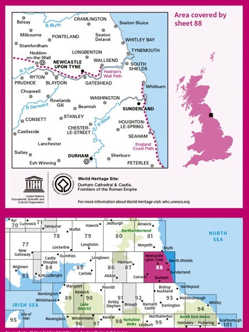 Kaarten en gidsen > Wandelen > Wandelkaarten > Europa > Britse Eilanden > Groot-Brittannië > Engeland > Noordoost-Engeland > LR-088 Newcastle upon Tyne, Durham, Sunderland | topografische wandelkaart