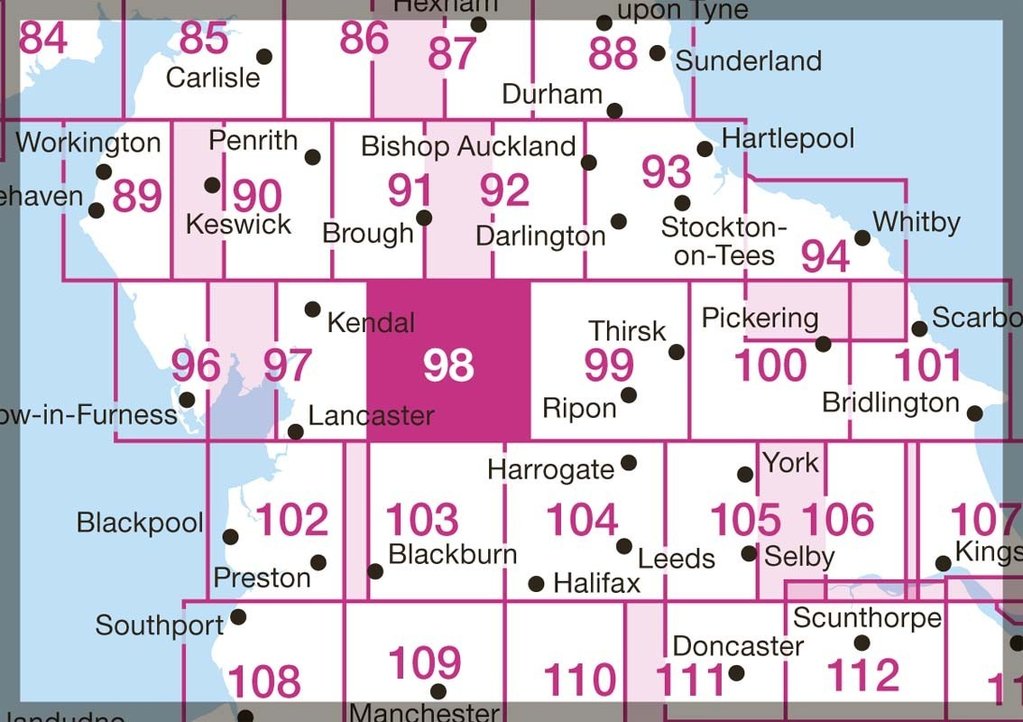 KLIK OP DE SERIENAAM, DAN VERSCHIJNEN ALLE KAARTEN OP VOLGORDE | Deel uit de serie topografische kaarten van Groot Brittannie met de schaal 1:50.000. (Grote kaarten, dus relatief voordelig. Goede cartografie, zeer gedetailleerd als fietskaart, als wandelkaart ook goed te gebruiken (zeker in dun bevolkt gebied). Aanduiding o.m. van National Trails, youth hostels en campings.