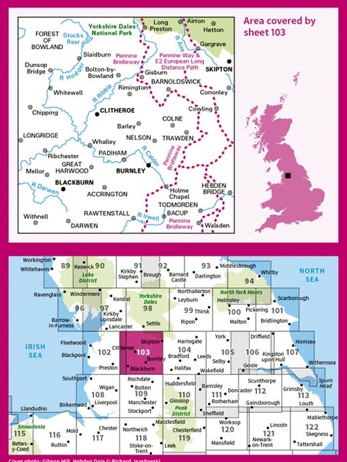 Kaarten en gidsen > Wandelen > Wandelkaarten > Europa > Britse Eilanden > Groot-Brittannië > Engeland > Noordwest-Engeland > LR-103 Blackburn, Burnley | topografische wandelkaart
