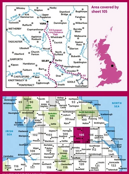 Kaarten en gidsen > Wandelen > Wandelkaarten > Europa > Britse Eilanden > Groot-Brittannië > Engeland > Noordoost-Engeland > LR-105 York + Selby | topografische wandelkaart