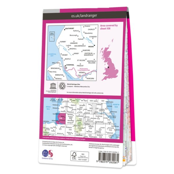 Kaarten en gidsen > Wandelen > Wandelkaarten > Europa > Britse Eilanden > Groot-Brittannië > Engeland > Liverpool & Manchester > LR-108 Liverpool, Southport + Wigan | topografische wandelkaart