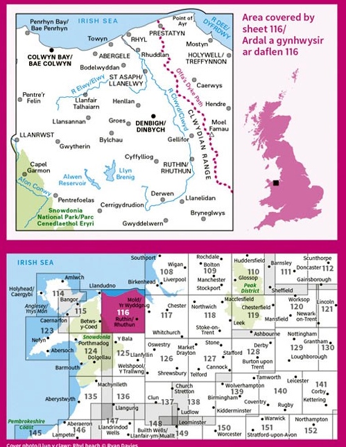 Kaarten en gidsen > Wandelen > Wandelkaarten > Europa > Britse Eilanden > Groot-Brittannië > Wales > Noord-Wales, Anglesey, Snowdonia > LR-116 Denbigh + Colwyn Bay | topografische wandelkaart