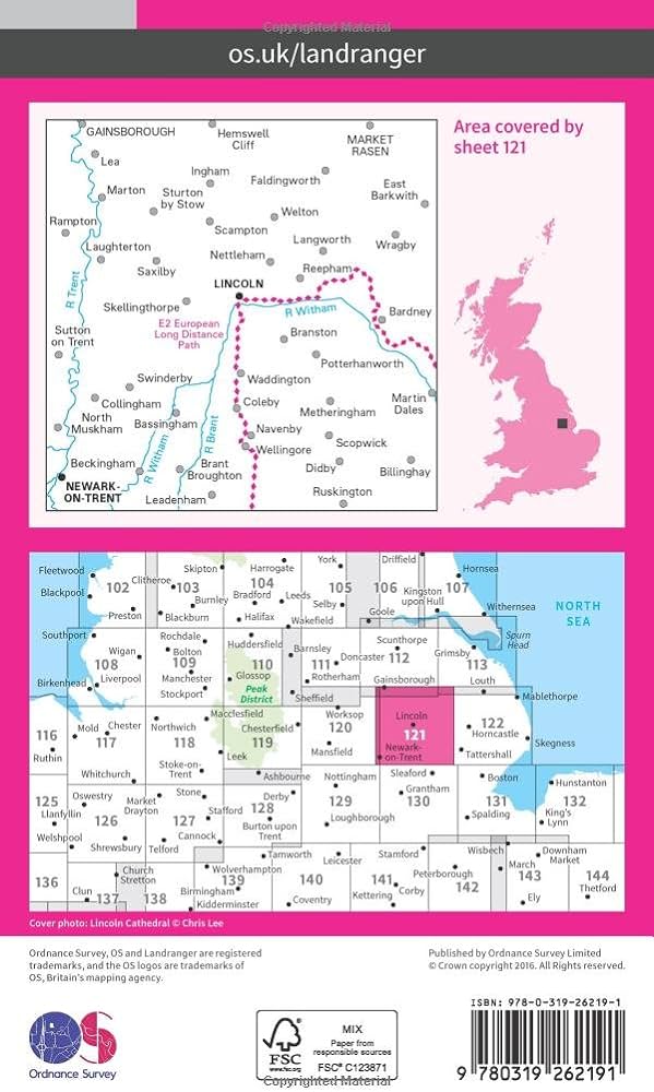 Kaarten en gidsen > Wandelen > Wandelkaarten > Europa > Britse Eilanden > Groot-Brittannië > Engeland > Oost-Engeland > LR-121 Lincoln, Newark-on-Trent | topografische wandelkaart